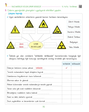 Uyarı sembollerinin anlamlarını yazarak kavram haritasını tamamlayınız.