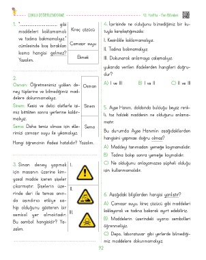 3. Sinan deney yapmak I. C) Ne olduğunu anlayamazsa şüpheli olduğu