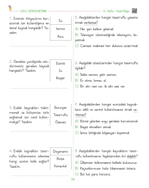 1. Evimizin ihtiyaçlarını kar- Su 5. Aşağıdakilerden hangisi tasarruflu yaşama