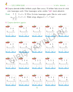 x 3 3 x 2 = 6 (Eldeki onluğu ekleyince 6 + 1 = 7 olur.)