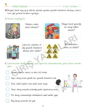 ✿ Bireysel olarak veya grup hâlinde çalışırken gereken güvenlik önlemlerini almalıyız. Labora-