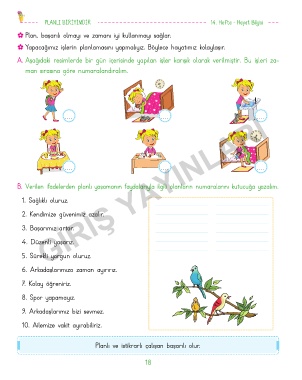 B. Verilen ifadelerden planlı yaşamanın faydalarıyla ilgili olanların numaralarını kutucuğa yazalım.