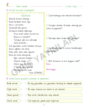SALINCAK 1. Çocuk bahçeye niçin salıncak kurmuştur?
