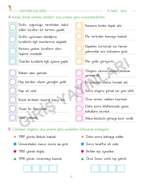 A. Karışık olarak verilmiş cümleleri oluş sırasına göre numaralandıralım.