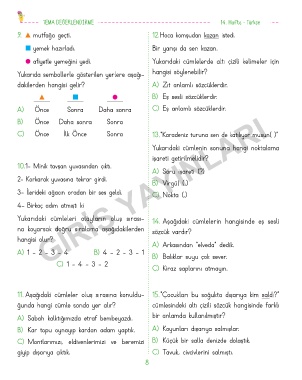 Yukarıdaki cümleleri olayların oluş sırası- 14. Aşağıdaki cümlelerin hangisinde eş sesli