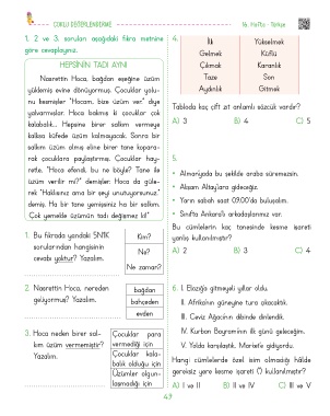 Page 50 - 3. Sınıf Hafta Hafta Biçimlendirici Değerlendirme Fasikül - 4