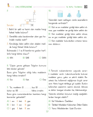 Buna göre Tolga’nın aldığı koku maddenin lı maddeler vardır. Laboratuvarlarda bulunan