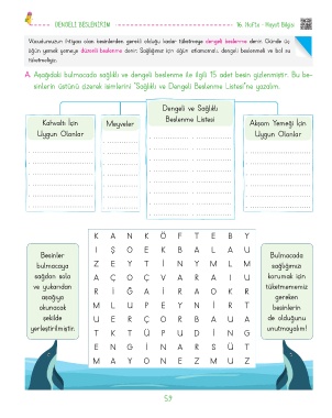 A. Aşağıdaki bulmacada sağlıklı ve dengeli beslenme ile ilgili 15 adet besin gizlenmiştir. Bu be-
