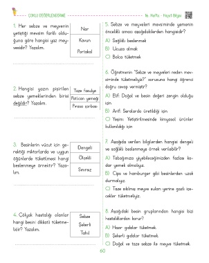 ğuna göre hangisi yaz mey- Kavun A) Sağlıklı beslenmek