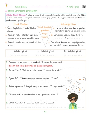 1. cümledeki görevi 2. cümledeki görevi 3. cümledeki görevi