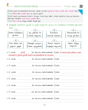 A. Aşağıdaki cümlelerin gerçek mi yoksa hayali bir durum mu olduklarını örnekteki gibi belir-