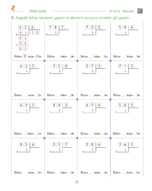 B. Aşağıdaki bölme işlemlerini yapalım ve işlemlerin sonucunu örnekteki gibi yazalım.