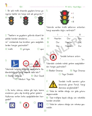 1. Bir ışıklı trafik cihazında yayalara kırmızı ya- 5.