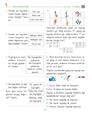 3. Duyduğumuz sesin Ses kaynağından 6. “Deniz kenarında oturmuş, insana huzur ve-