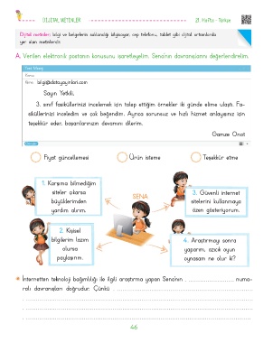 A. Verilen elektronik postanın konusunu işaretleyelim. Sena’nın davranışlarını değerlendirelim.