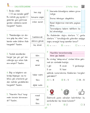 lesinde neden bildiren ifade doktora gitmek doğru sırasıyla hangi işaretler konur?