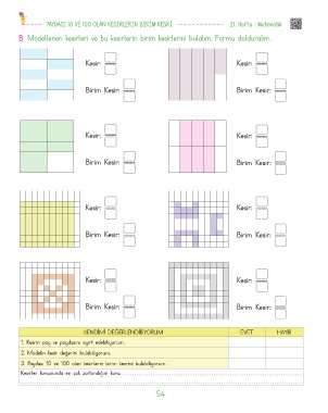 B. Modellenen kesirleri ve bu kesirlerin birim kesirlerini bulalım. Formu dolduralım.