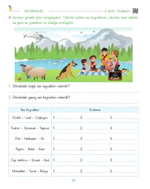 A. Soruları görsele göre cevaplayalım. Tabloda verilen ses kaynaklarını, çıkarılan sesin şiddeti-