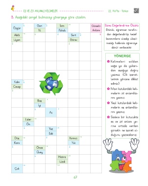 B. Aşağıdaki çengel bulmacayı yönergeye göre çözelim.
