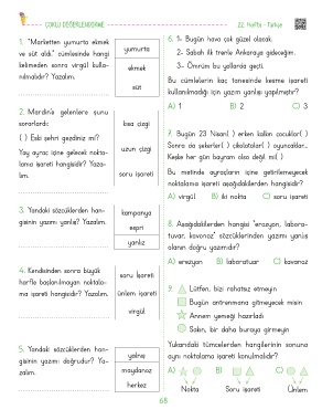ÇOKLU DEĞERLENDİRME 22. Hafta - Türkçe