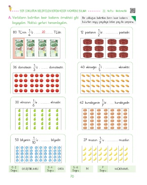A. Varlıkların belirtilen kesir kadarını örnekteki gibi Bir çokluğun belirtilen birim kesir kadarını