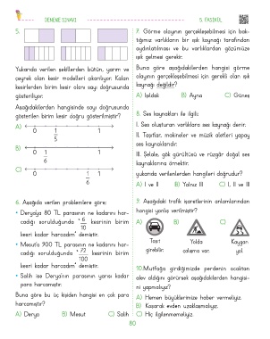 cadığı sorulduğunda “ 6 kesrinin birim A) B) C)