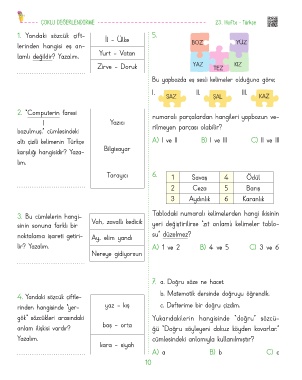 Page 11 - 3. Sınıf Hafta Hafta Biçimlendirici Değerlendirme Fasikül - 6