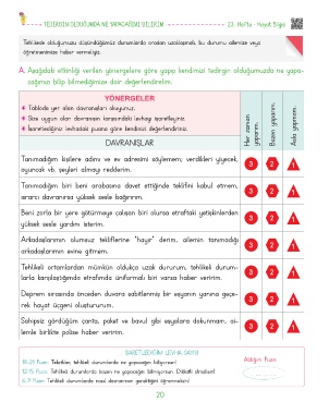 İşaretlediğiniz levhadaki puana göre kendinizi değerlendiriniz. Her zaman yaparım. Bazen yaparım. Asla yapmam.