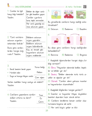 Page 40 - 3. Sınıf Hafta Hafta Biçimlendirici Değerlendirme Fasikül - 6