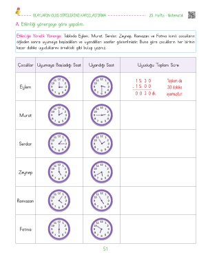 kaçar dakika uyuduklarını örnekteki gibi bulup yazınız.