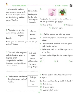 Page 58 - 3. Sınıf Hafta Hafta Biçimlendirici Değerlendirme Fasikül - 6