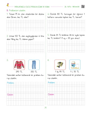 PARALARIMIZLA İLGİLİ PROBLEM ÇÖZME VE KURMA 26. Hâftâ - Mâtemâtik