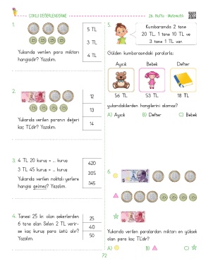 se kaç kuruş para üstü alır? Yukarıda verilen paralardan miktarı en yüksek
