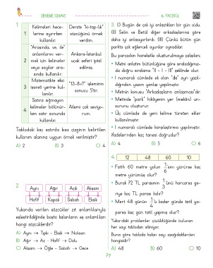 Page 80 - 3. Sınıf Hafta Hafta Biçimlendirici Değerlendirme Fasikül - 6