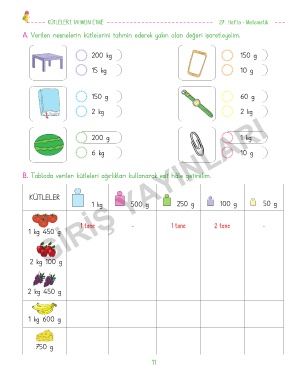 A. Verilen nesnelerin kütlelerini tahmin ederek yakın olan değeri işaretleyelim.
