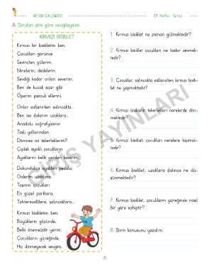 Dokundukça ayakları pedala, 6. Kırmızı bisiklet, uzaklara dalınca ne dü-