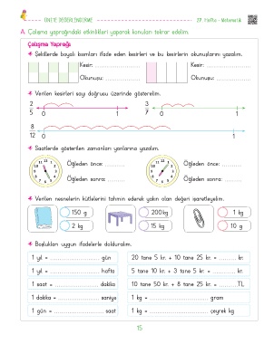 A. Çalışma yaprağındaki etkinlikleri yaparak konuları tekrar edelim.