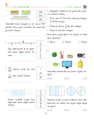 gramdır. Buna göre portakalın bir tanesi kaç • Fatma bir günün ’inde ders çalışıyor.