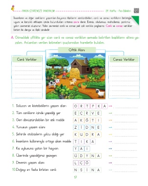 A. Görseldeki çiftlikte yer alan canlı ve cansız varlıkları şemada belirtilen başlıkların altına ya-