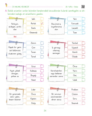 larındaki boşluğa zıt anlamlılarını yazalım.