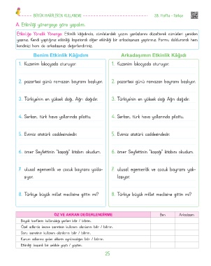Benim Etkinlik Kâğıdım Arkadaşımın Etkinlik Kâğıdı