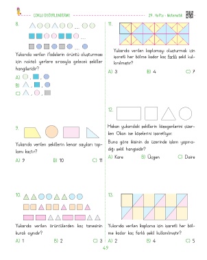 Yukarıda verilen ifadelerin örüntü oluşturması işaretli her bölme kadar kaç farklı şekil kul-