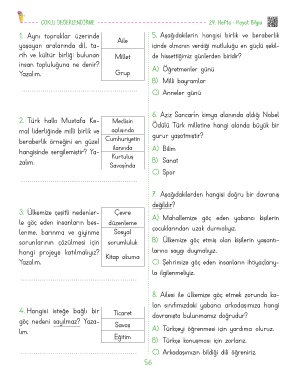 2. Türk halkı Mustafa Ke- Meclisin Ödülü Türk milletine hangi alanda büyük bir