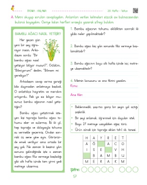 A. Metni okuyup soruları cevaplayalım. Anlamları verilen kelimeleri sözcük avı bulmacasından