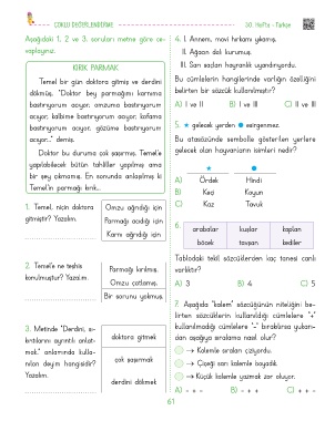 Page 62 - 3. Sınıf Hafta Hafta Biçimlendirici Değerlendirme Fasikül - 7