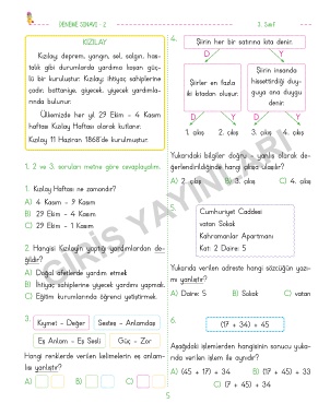 2. Hangisi Kızılay’ın yaptığı yardımlardan de- Kat: 2 Daire: 5