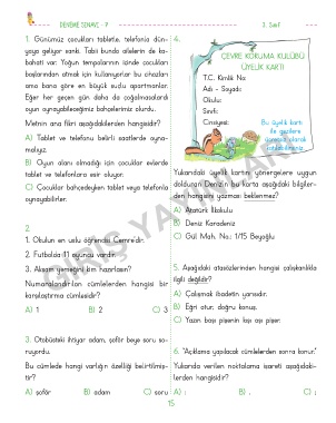 1. Okulun en uslu öğrencisi Cemre’dir. C) Gül Mah. No.: 1/15 Beyoğlu