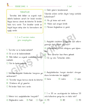 DENEME SINAVI - 8 3. Sınıf