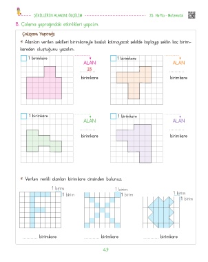 Alanları verilen şekilleri birimkareyle boşluk kalmayacak şekilde kaplayıp şeklin kaç birim-
