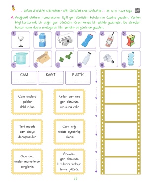 A. Aşağıdaki atıkların numaralarını, ilgili geri dönüşüm kutularının üzerine yazalım. Verilen